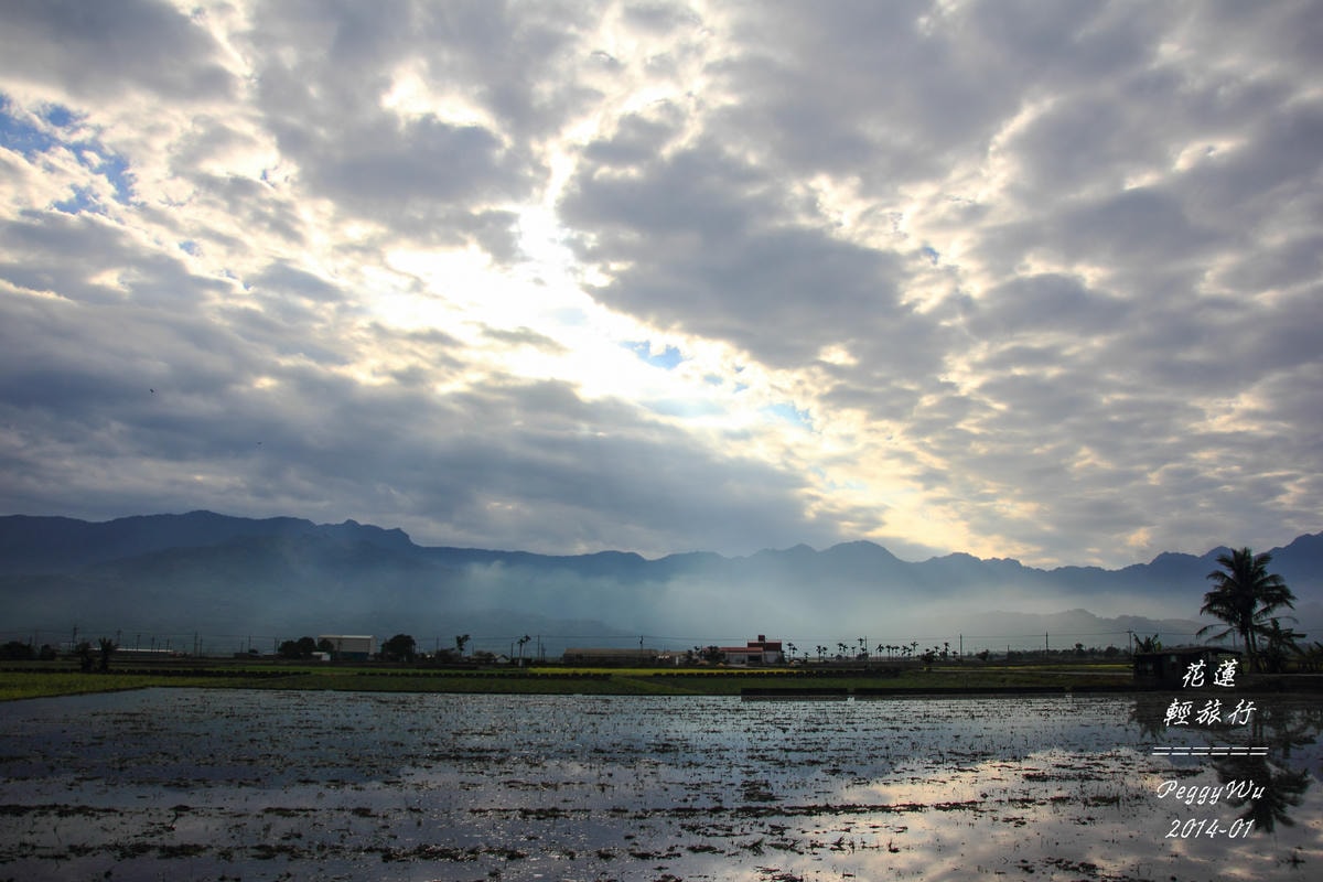 這就是淳樸的花蓮風景 隨手一按都是美圖 (自己說的啦~~~) 配上黃油油綠油油 心情除了寧靜 還是寧靜 很享受當下的感覺 空氣又好的不得了 其實前一天往南安的時候 就有經過這裡 但是下午時分 天氣陰陰的 所以放棄 改早上吃完早餐過來 果真讓我遇到好的景 好的時間 因為等一會 火車就緩緩駛過了 期待的也是…