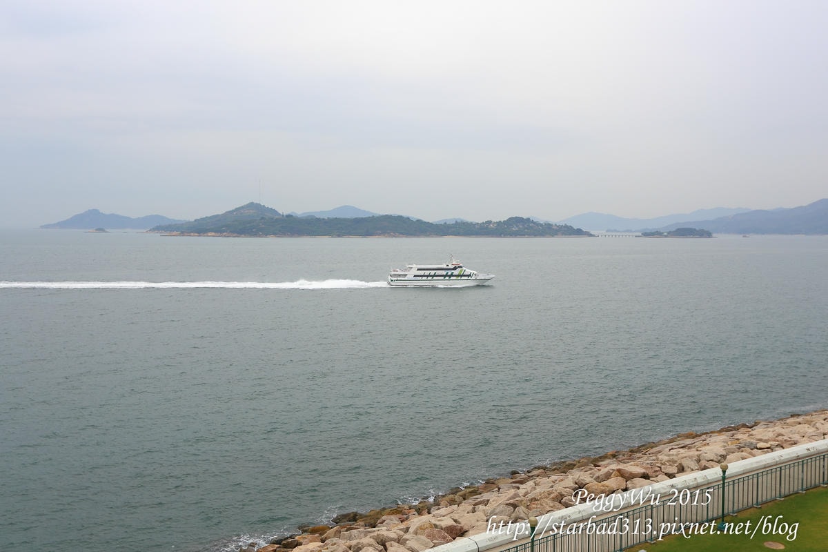 澳門格蘭披治大賽車-外港碼頭賽車大看台 吃完午餐 在新馬路搭車到外港碼頭 不過因為賽事封道無法進入 我們在前兩站便下車了 吃完飯剛好散步一下 賽事仍在進行中 幾乎整個本島都可以聽到車子的高速引擎聲 這邊更是大聲 畢竟旁邊就是賽道 雖然這是我第二次觀賽 在現場仍是心跳加速 血脈噴張 從相片可以看出來 天橋走道兩邊…