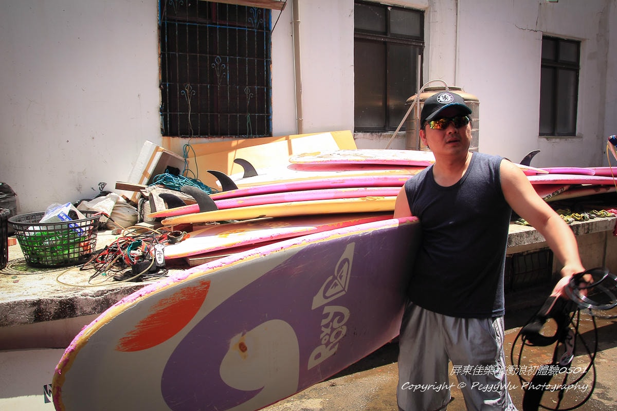 老公的連休假期 最後一天來到佳樂水衝浪 展現他的超高學習力 其實我覺得他根本是先來偷練的 不過很厲害唷 很快的都可以站在衝浪板上 鼓掌 看海的歐吉桑 其實是因為消耗太多體力 所以在休息啦!!!