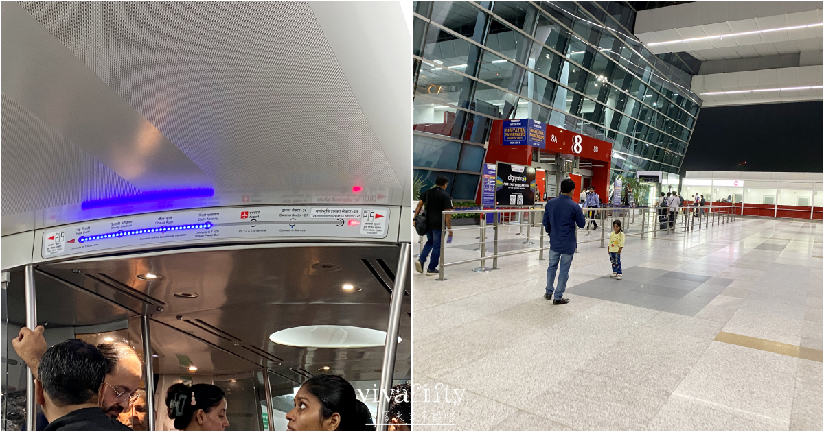 搭乘機場線至航站 – T3出境紀錄 先CALL了Uber去地鐵站 搭乘橘線Airport Express Line到機場 太陽西下準備賦歸 沒啦!!!我們準備離開印度到河內去了 站內指標很清楚 一樣先到售票機買票 到航站是30盧比 依指標到月台搭乘開往機場航站的列車 跟一般的地鐵車廂不…